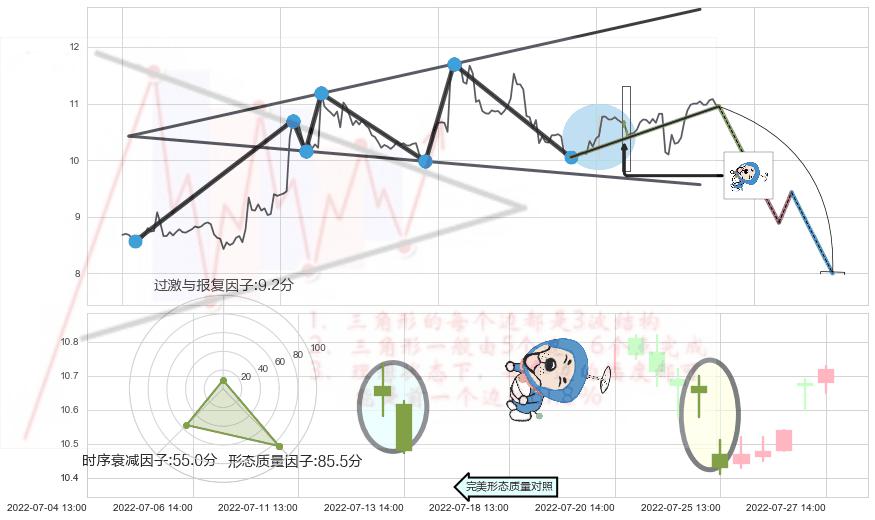 ➢ 🕰 价格走势在2022-07-22 14:00:00至2022-07-25 13:00:00期间形成下跌螺旋桨,残存影响值:-3.26