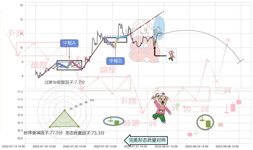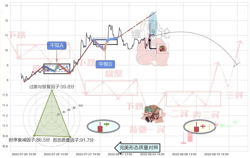 从2022-07-12 13:00至2022-08-12 14:00,共包含48个小时,阶段股价上涨9.07%,阶段股价变动位移路程比: 1 : 4