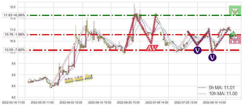♞ 5小时均线:11.01,10小时均线:11.00→ 快线>慢线
