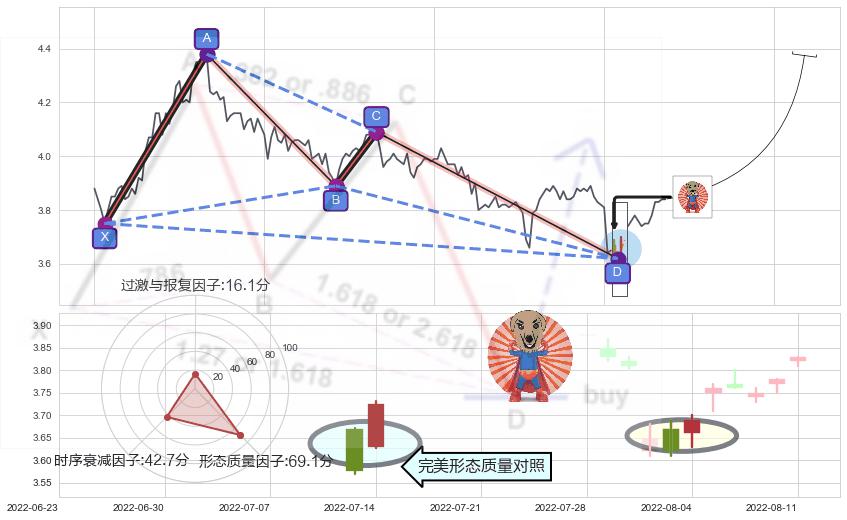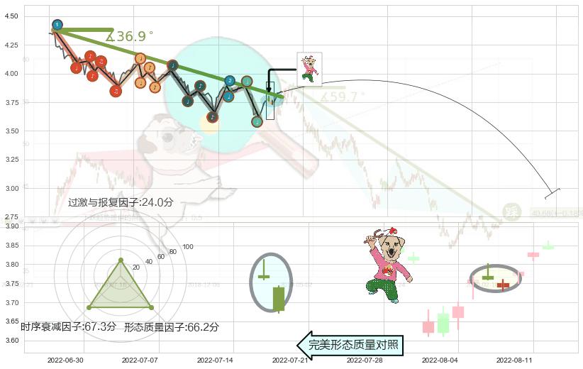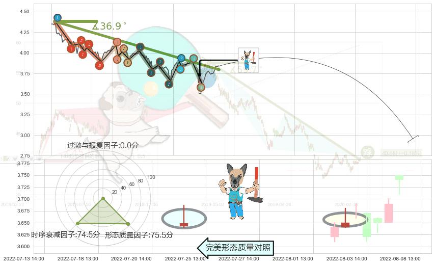 ♘ 在最后的下跌阶段2022-06-01 14:00至2022-08-11 14:00,存在 破位边缘的阻力位 ,阻力价格3.795,可信任强度76.77%,其距离最后价格3.840相差 -1.18%