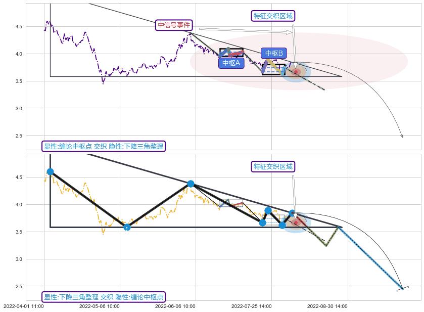 ➢ 缠论中枢点属【中级别信号事件】下降三角整理属【长级别信号事件】中长周期组合信号事件,中长事件长度比42.37%