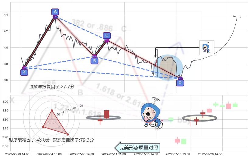 ➢ 上涨螺旋桨形态 🔜 谐波蝴蝶d拐点上涨支撑 综合量化分数:54.92 【偏多】