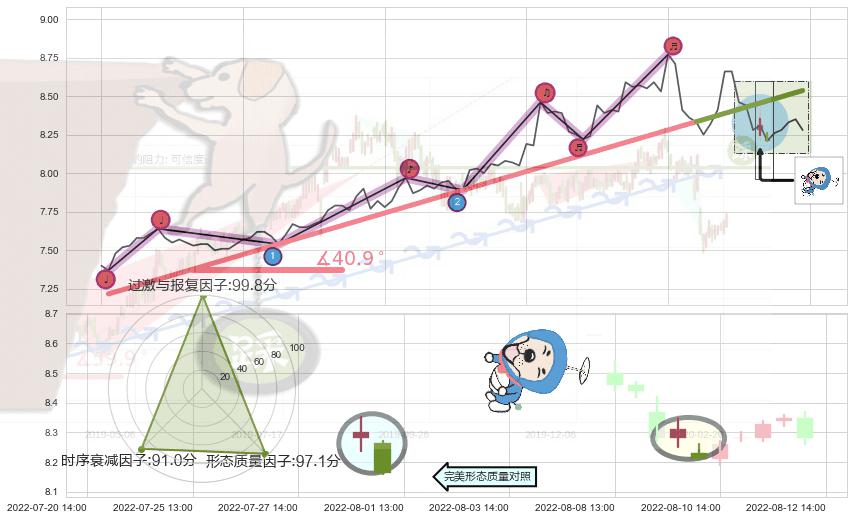 ➢ 2022-06-14 11:00-2022-08-03 13:00上升趋势存在反转[风险],其原上升趋势的支撑位(8.54)已破位[强阻力信号],原上升趋势角度: 40.9˚