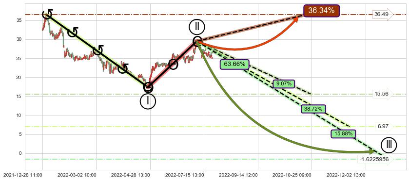 ➣ 调整浪已超过预测的c点位置,后续大趋势循环浪继续下跌概率63.66%,谨慎做多