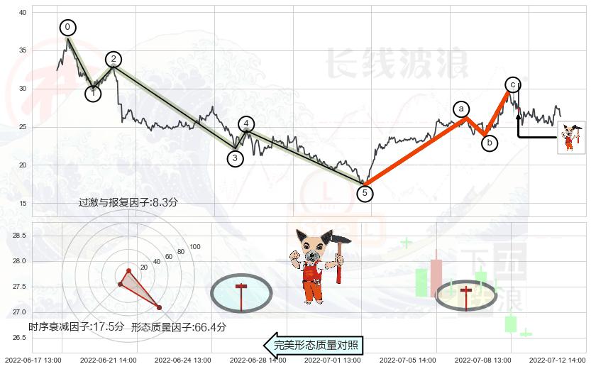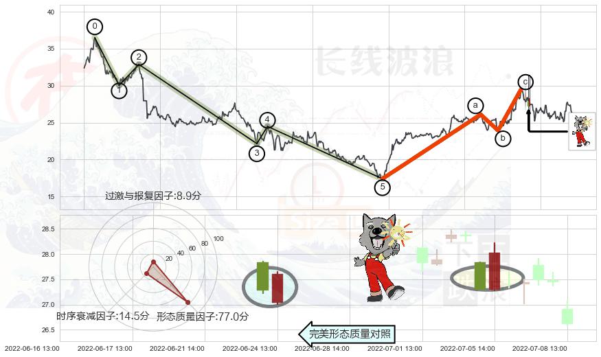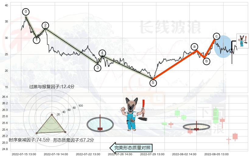 ➢ 波浪理论c点反弹终止反转下跌 🔜 波浪理论上涨浪:浪5回调拐点 综合量化分数:38.11 【偏空】
