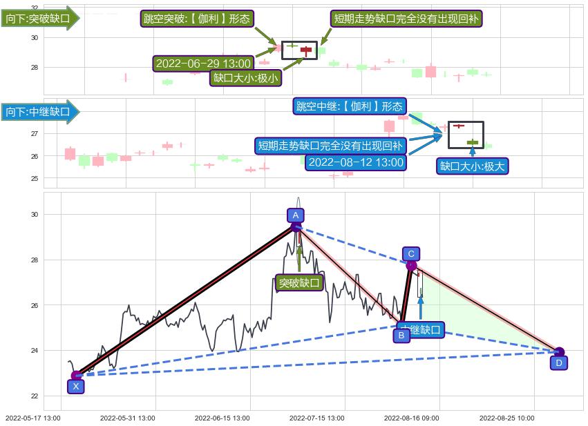 ➢ 2022-08-12 13:00形成:向下跳空【中继】缺口