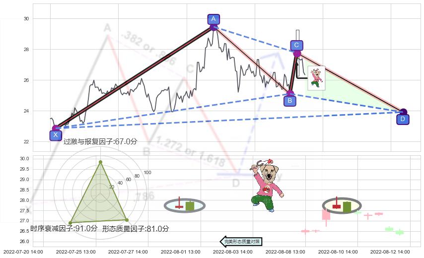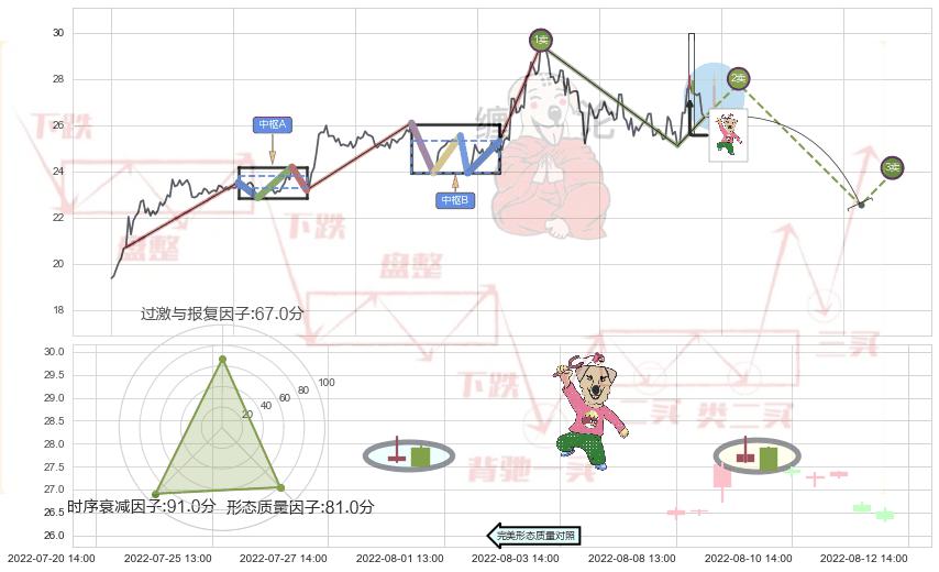 ➢ 🕰 价格走势在2022-08-10 00:00:00至2022-08-12 00:00:00期间形成空方炮,残存影响值:-0.56
