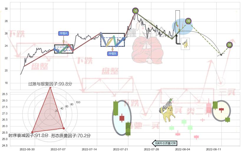 ➢ 下跌孕十字星 🔜 缠论买卖点2卖回调下跌至3卖 综合量化分数:47.13 【中性】
