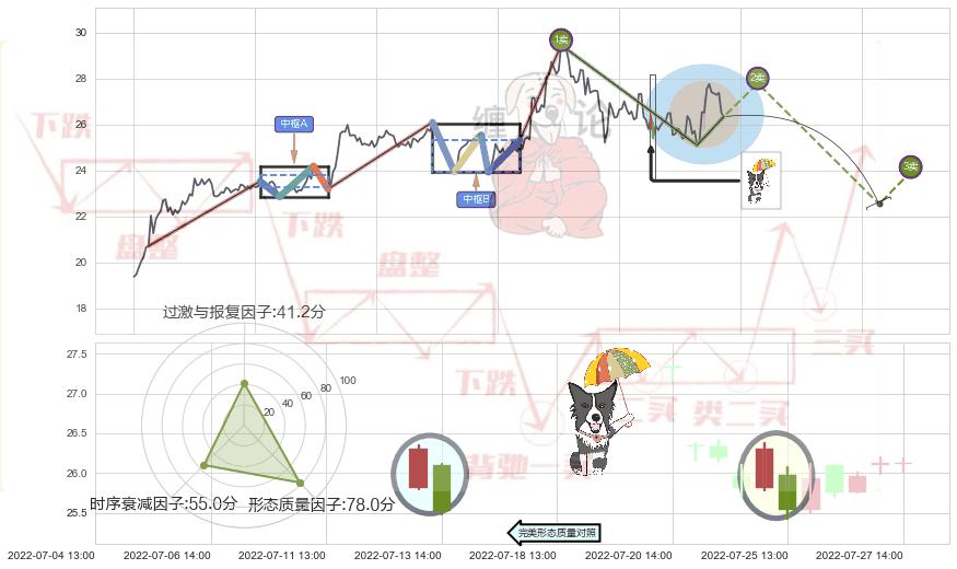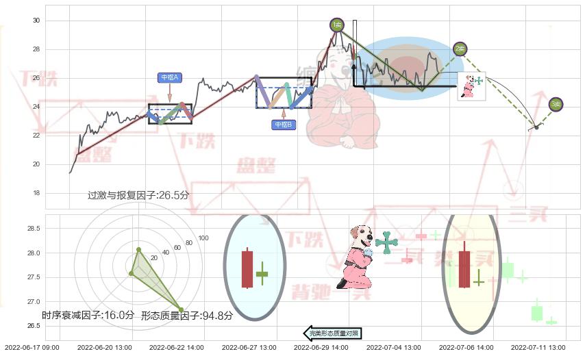 ➢ 吊颈线(上吊线) 🔜 缠论买卖点2卖回调下跌至3卖 综合量化分数:46.68 【中性】