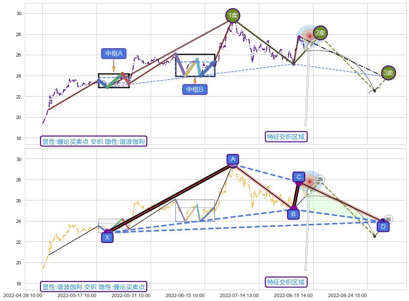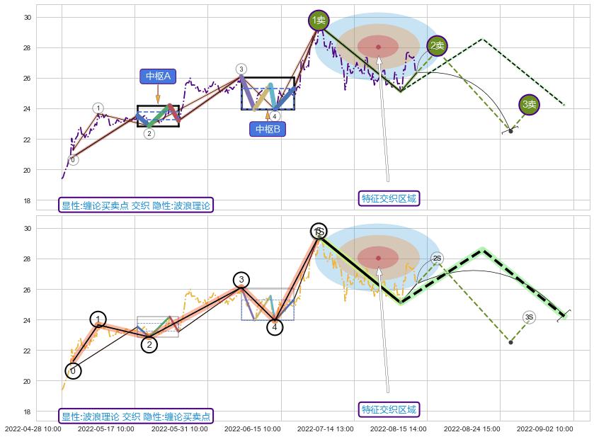 ➣ 缠论买卖点:猜想2卖持续蓄力下跌至3卖 → 下跌 → 风险信号 → 小趋势跟踪