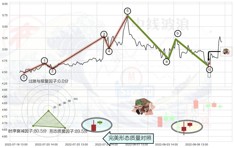 ➢ 🕰 价格走势在2022-08-01 13:00:00至2022-08-01 14:00:00期间形成底部尽头线(上山虎),残存影响值:4.05