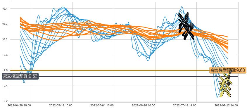 ➣ 60小时均线于(07-11 14:00: 10.12)形成【死叉】基于【死叉历史模型】预测死叉后最低波谷价格: 9.58, 死叉后最低价格9.21,已经下跌超出预测最低波谷价格, 预期反弹