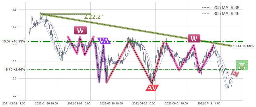 ♞ 20小时均线:9.38,30小时均线:9.49→ 快线<慢线