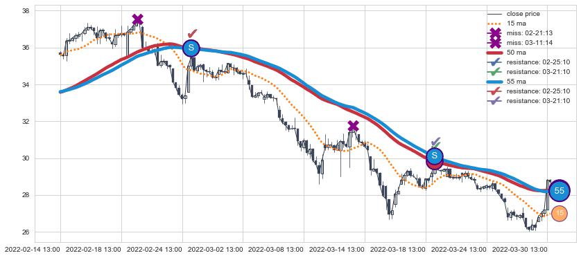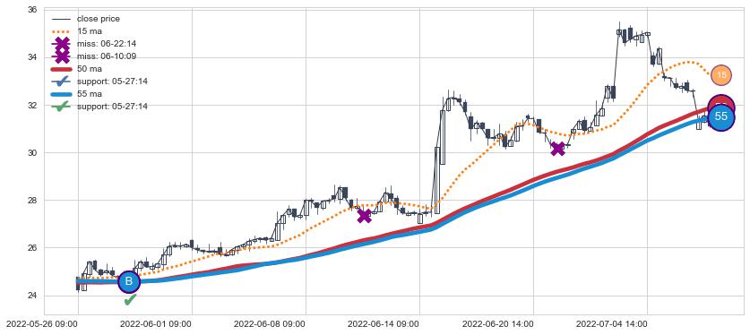 ➢ 55小时均线于(07-18 14:00: 31.85)形成【金叉】基于【金叉历史模型】预测金叉后最高波峰价格: 34.78, 金叉后最高价格38.07,已经上涨超出预测最高波峰价格, 预期回调