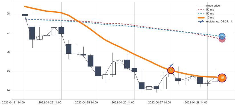 ➣ 50小时均线于(07-18 14:00: 31.87)形成【金叉】基于【金叉历史模型】预测金叉后最高波峰价格: 33.92, 金叉后最高价格38.07,已经上涨超出预测最高波峰价格, 预期回调