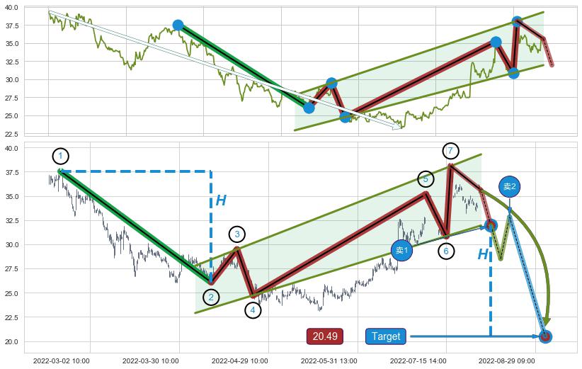 ➣ 最小中继整理跌幅→𝐇: 11.45 (𝐇旗杆的长度:旗杆起点→顶点)
