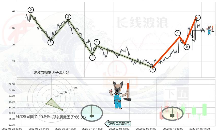 ➢ 波浪理论c点反弹终止反转下跌 🔜 升旗形临近支撑猜想转换阻力下跌 综合量化分数:37.56 【偏空】
