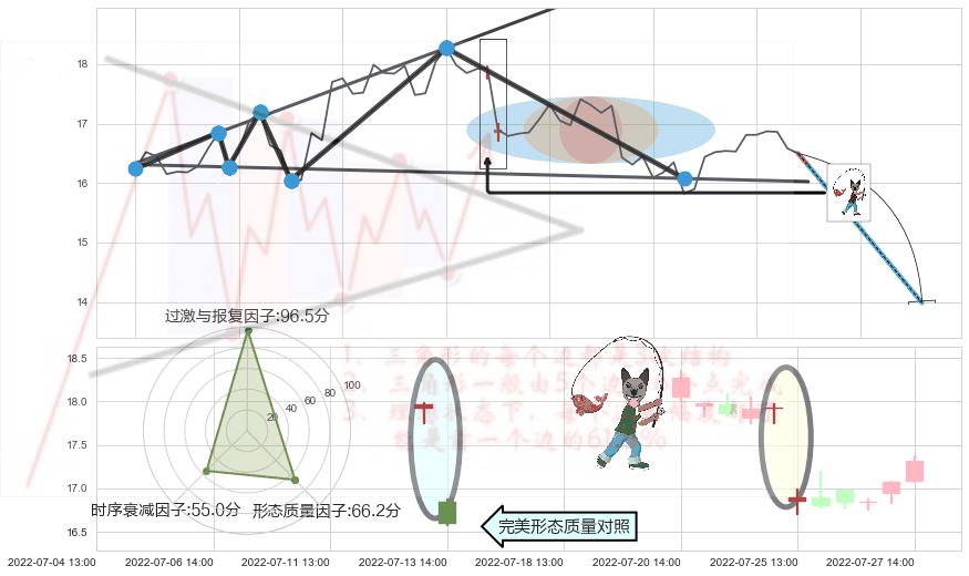 ➢ 2022-05-24 14:00-2022-07-22 14:00上升趋势存在反转[风险],其原上升趋势的支撑位(17.29)已破位[强阻力信号],原上升趋势角度: 38.5˚