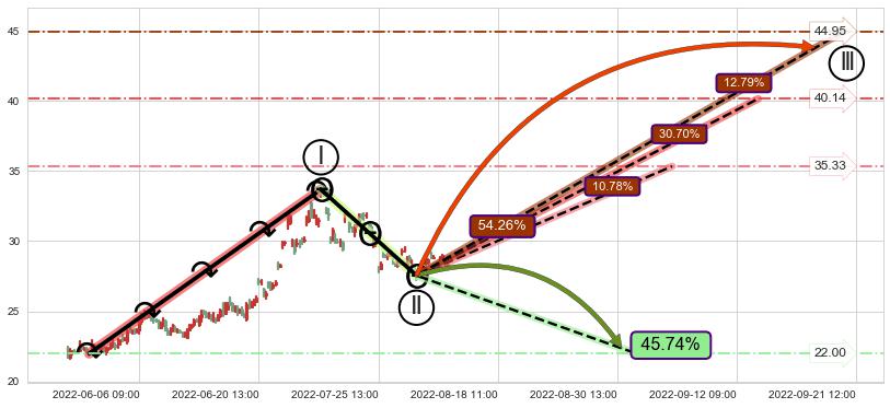 ➢ 循环浪继续向上【最高】位置(09-21:12, 44.95),匹配聚类样本比例23.57%, 可能性概率12.79%