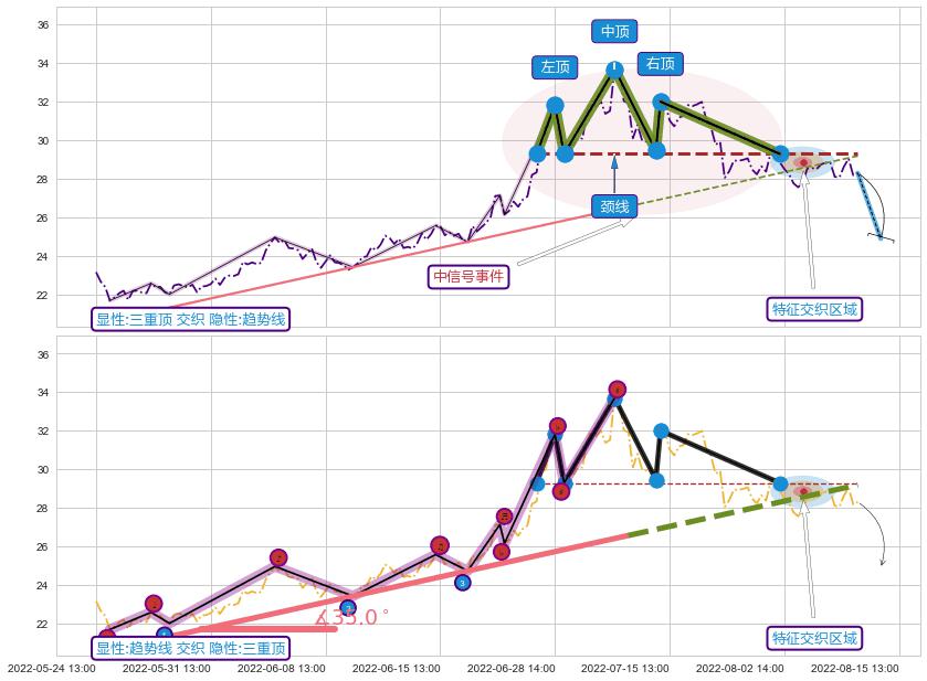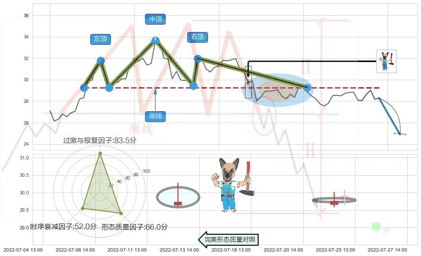 ➢ 【卖1】: 激进型 卖点→(08-02:13: 29.28 )形成突破三重顶【反转】形态