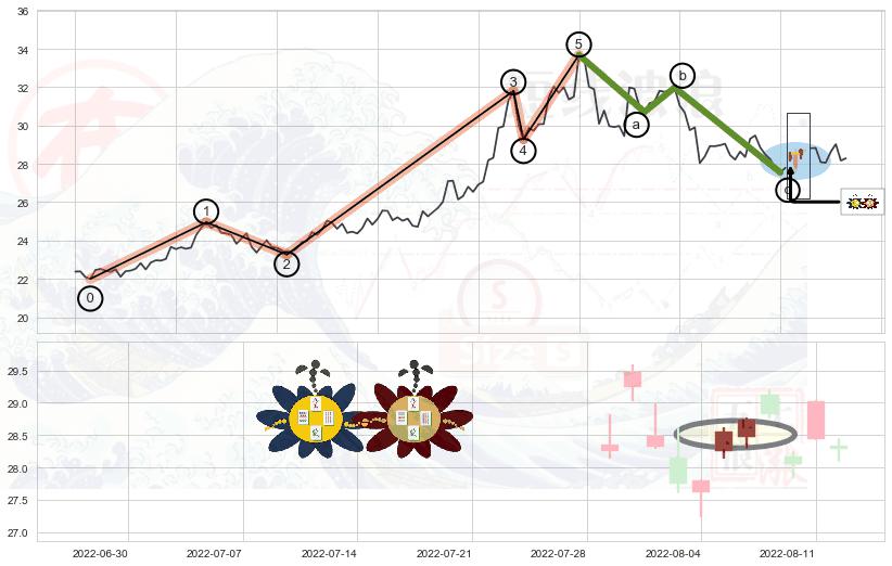 ➣ 波浪理论:猜想击穿破位c点后继续下跌 → 下跌 → 风险信号 → 小趋势跟踪