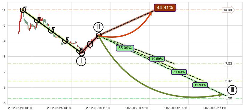 ➢ 循环浪继续向下【最高】位置(09-07:09, 7.53),匹配聚类样本比例19.23%, 可能性概率10.59%