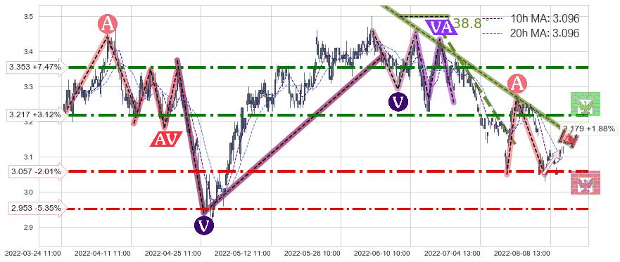 ♘ 阻力价格位3.217,可信任强度75.74%,距离最后交易2022-08-12 14:00形成的收盘价格3.120相差 +3.12%