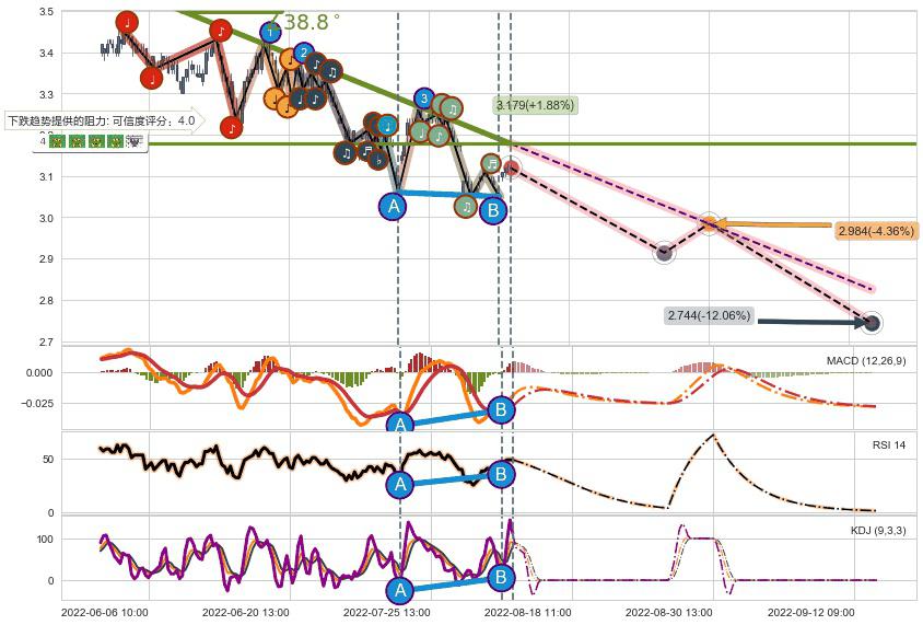 ➣ 预测:2022-08-30 13:00,【试探阻力】稳定目前下跌趋势的前提下,预测价格:2.984