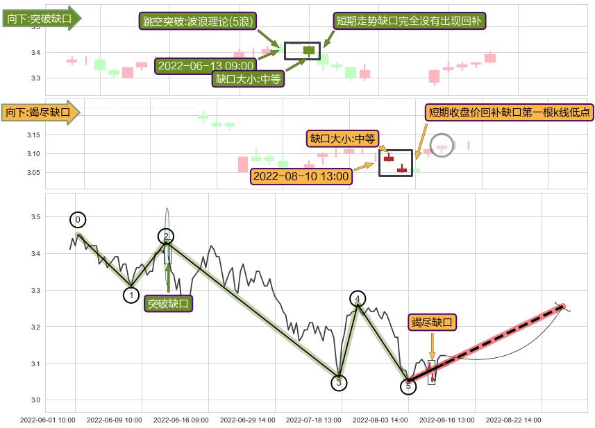 ➢ 2022-08-10 13:00形成:向下跳空【竭尽】缺口