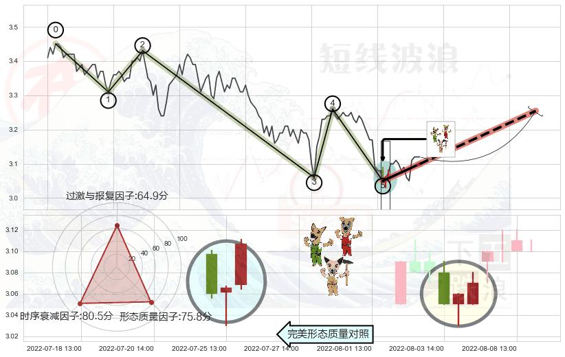➢ 🕰 价格走势在2022-08-04 00:00:00至2022-08-05 00:00:00期间形成上涨螺旋桨形态,残存影响值:5.87