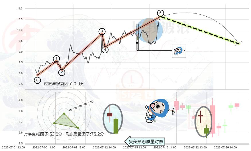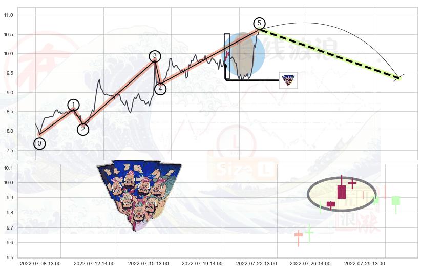 ➢ 🕰 价格走势在2022-07-21 14:00:00至2022-07-22 13:00:00期间形成下跌螺旋桨,残存影响值:-2.62