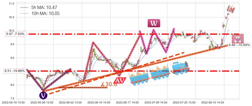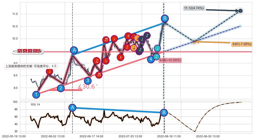 ➣ 预测:2022-08-23 11:00,【小幅回撤】稳定目前上涨趋势的前提下,预测价格:9.87