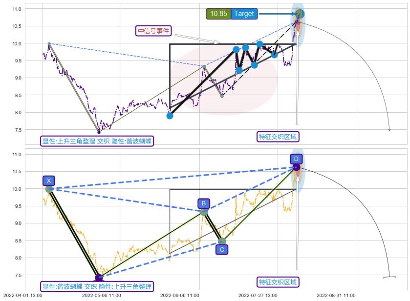 ➢ 上升三角整理属【中级别信号事件】谐波蝴蝶属【长级别信号事件】中长周期组合信号事件,中长事件长度比43.85%