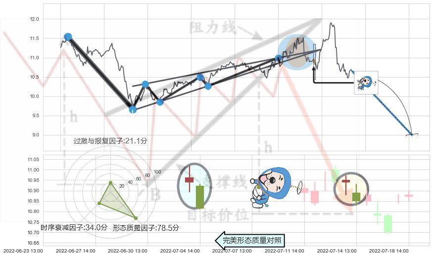 ➢ 🕰 价格走势在2022-07-19 13:00:00至2022-07-19 14:00:00期间形成顶部尽头线(下山虎),残存影响值:-3.33