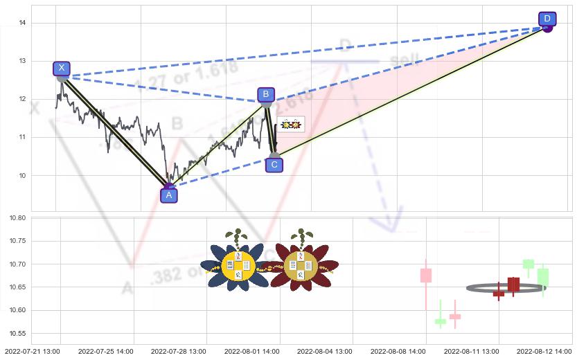 ➣ 未完成【蝴蝶】形态起点X: 02-14:10, 已到达C点: 08-10:13, 预测最终D点: 01-09:14, 共1140交易小时