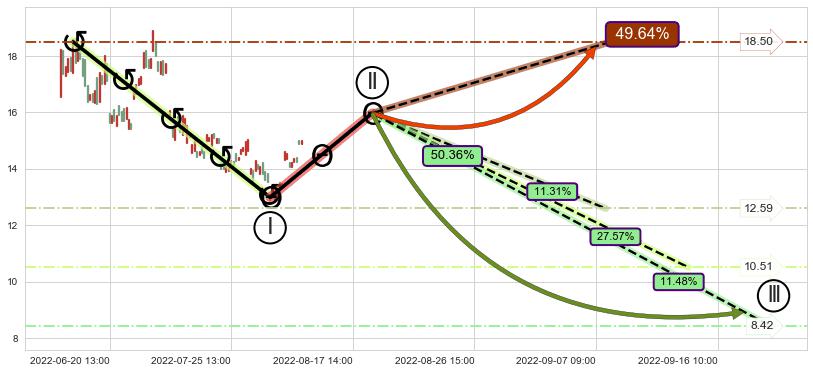 ➢ 循环浪继续向下【最低】位置(09-21:11, 8.42),匹配聚类样本比例22.79%, 可能性概率11.48%