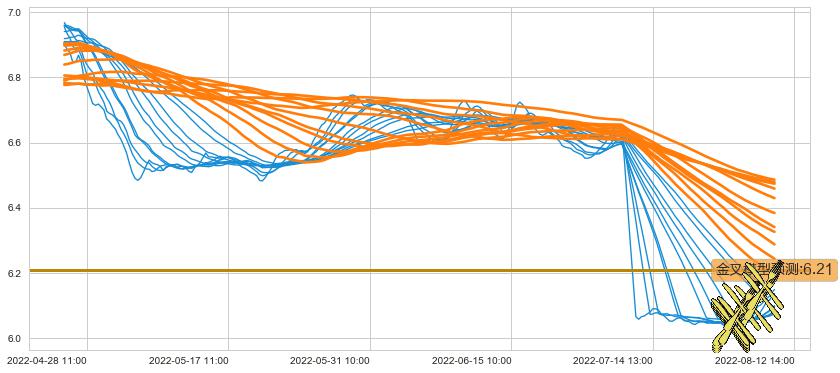 ➢ 60小时均线于(08-10 14:00: 6.16)形成【金叉】基于【金叉历史模型】预测金叉后最高波峰价格: 6.31, 金叉后最高价格6.21,尚未达到预测最高波峰价格, 预期继续上涨