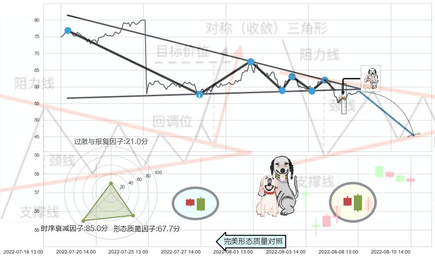 ➢ 【卖1】: 激进型 卖点→(08-03:13: 59.00 )形成突破下降【对称】三角形整理【整理】形态
