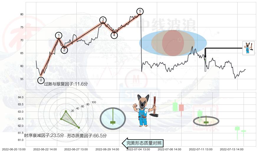 从2022-06-14 11:00至2022-07-25 13:00,共包含69个小时,阶段股价上涨2.71%,阶段股价变动位移路程比: 1 : 30