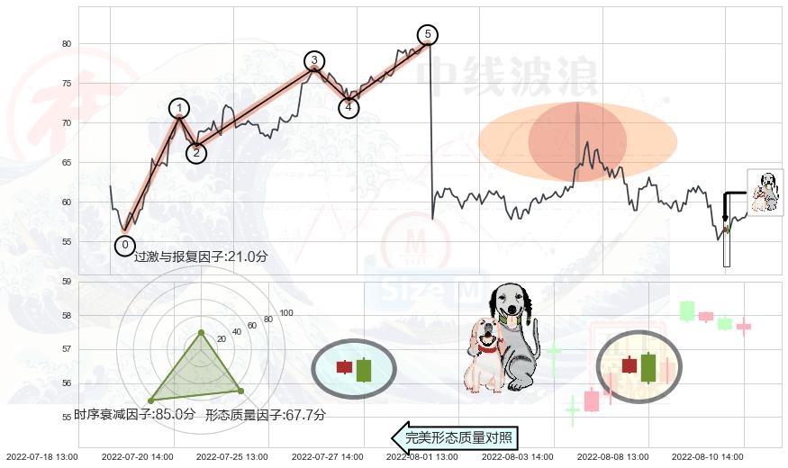 从2022-08-04 13:00至2022-08-12 14:00,共包含14个小时,阶段股价上涨6.08%,阶段股价变动位移路程比: 1 : 1.7