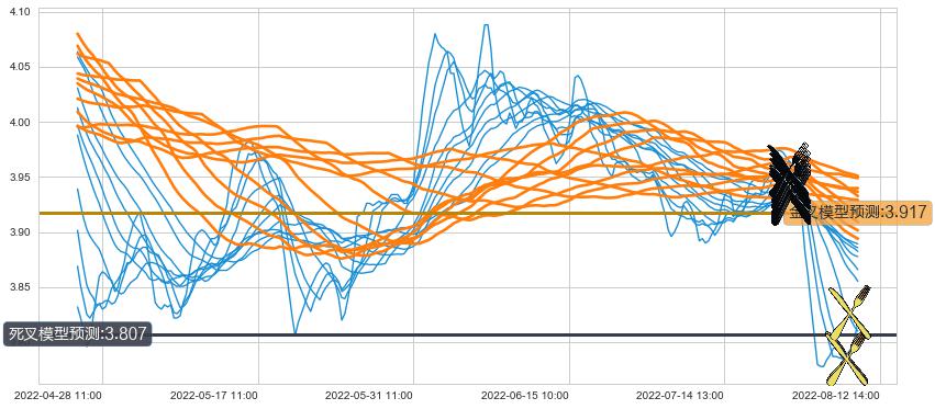 ➣ 34小时均线于(07-28 14:00: 3.932)形成【死叉】基于【死叉历史模型】预测死叉后最低波谷价格: 3.823, 死叉后最低价格3.760,已经下跌超出预测最低波谷价格, 预期反弹