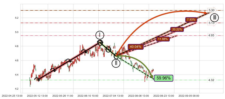 ➢ 循环浪继续向上【最低】位置(08-24:13, 4.95),匹配聚类样本比例29.67%, 可能性概率11.88%