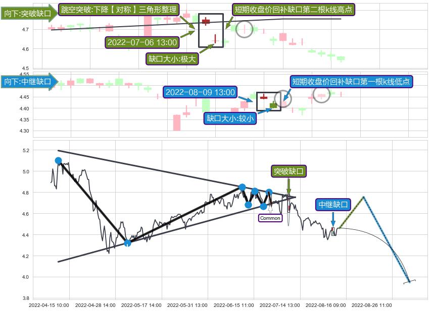 ➣ 08-10:13再次回踩幅度超过08-09:13, 缺口可信度降低