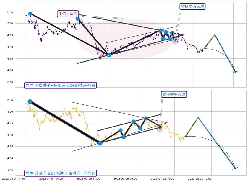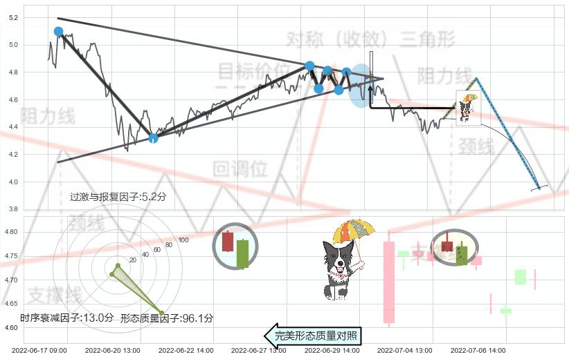 ➢ 【卖1】: 激进型 卖点→(06-22:14: 4.69 )形成突破下降【对称】三角形整理【整理】形态