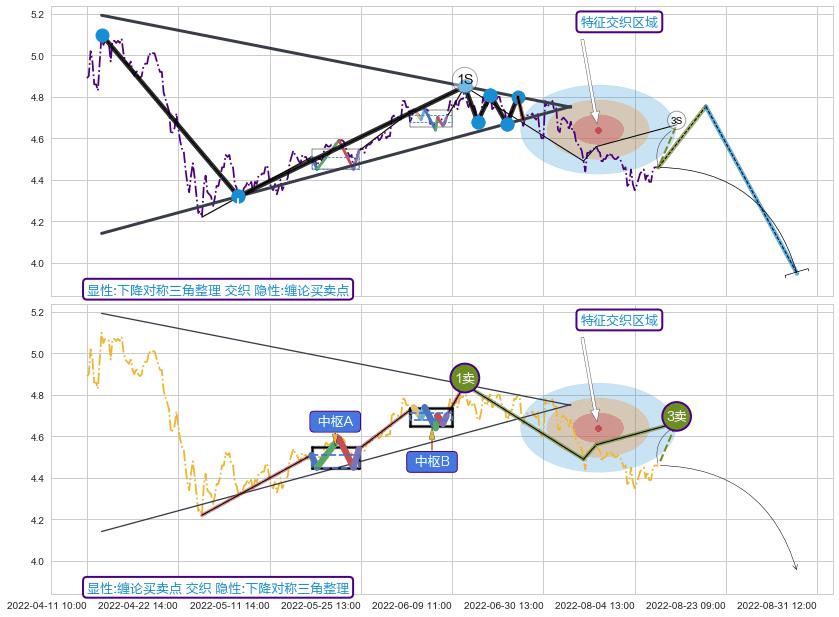 ➢ 下降对称三角整理与缠论买卖点信号事件周期长度级别相同,同周期信号事件