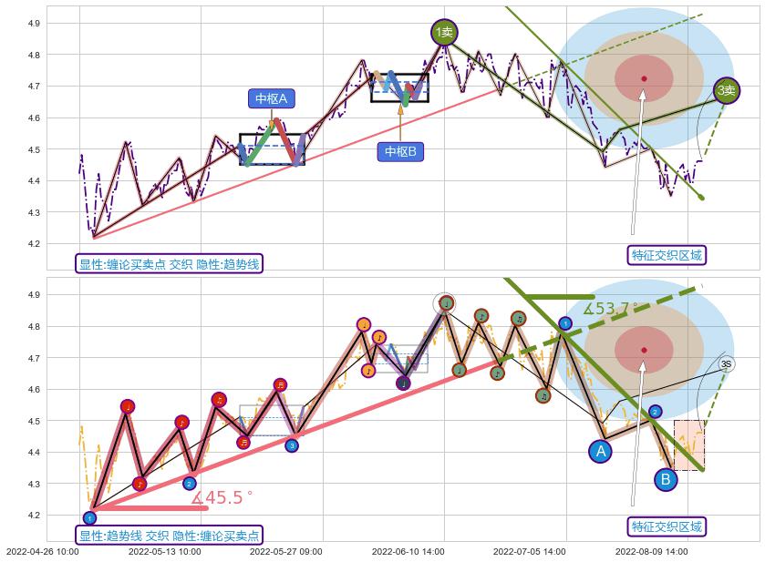➣ 【已完成】缠论 起点:04-27:11,完成第1中枢A,完成第2中枢B,终点:06-10:14,缠论共145交易小时