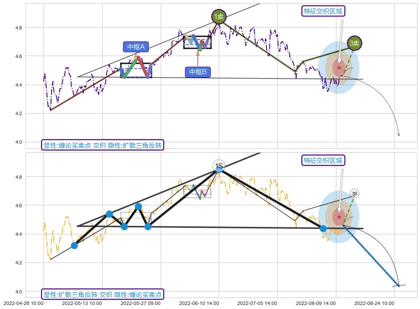 ➣ 【卖2】: 保守型 卖点→(08-05:14: 4.43 )形成【扩散】三角形反转突破后的【回抽确认】