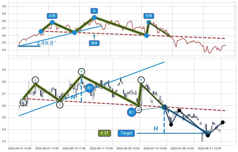 ➣ 最小反转跌幅→𝐇: 0.220847 (头部与颈线垂直距离)