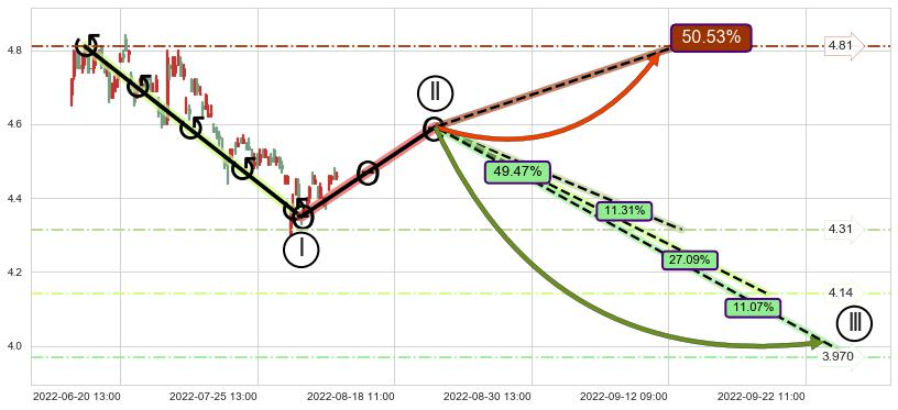 ➢ 循环浪继续向下【最高】位置(09-12:14, 4.31),匹配聚类样本比例22.86%, 可能性概率11.31%