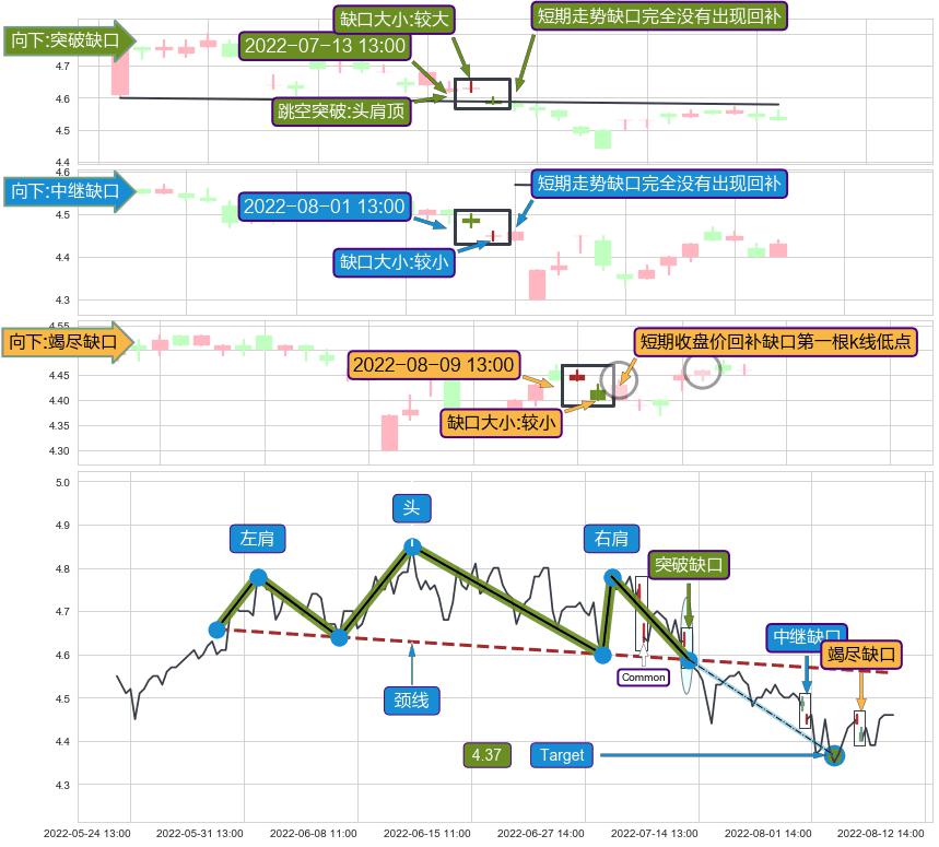 ➢ 2022-08-09 13:00形成:向下跳空【竭尽】缺口